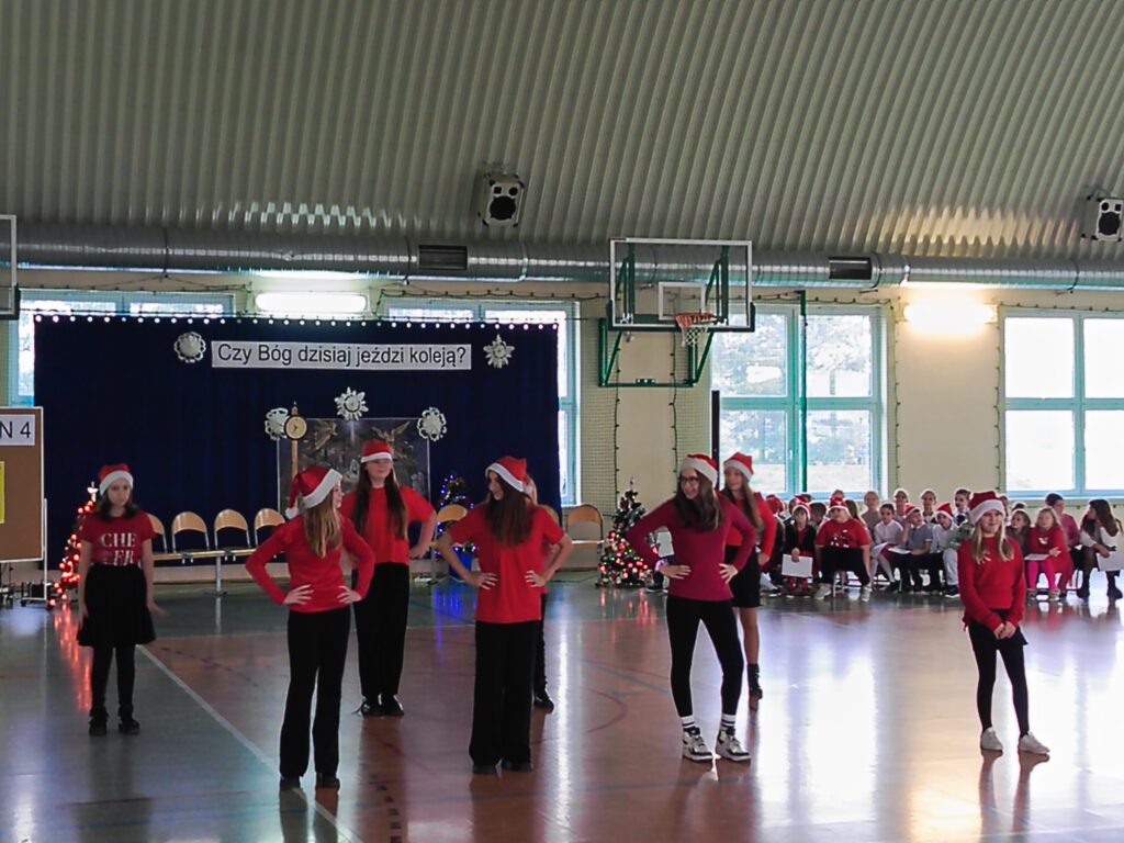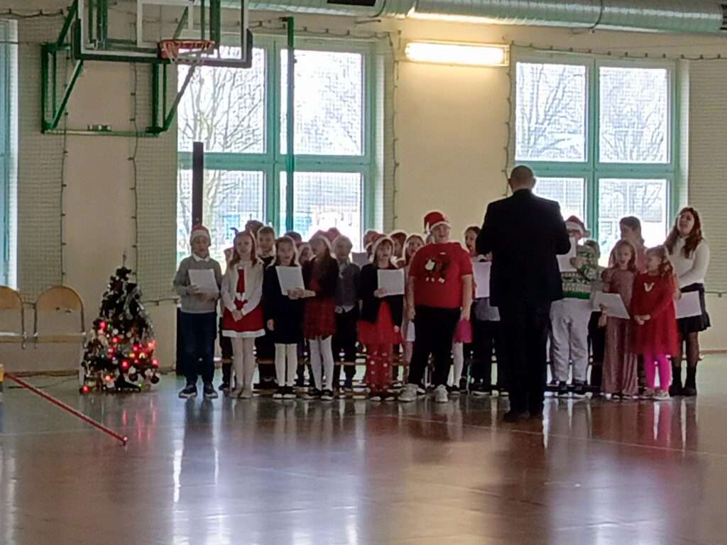 Uczniowie wystąpili z dużym zaangażowaniem i radością, prezentując swoje umiejętności wokalne oraz artystyczne. Występ został starannie przygotowany i spotkał się z ciepłym przyjęciem publiczności. Młodzi wykonawcy wykazali się odwagą sceniczną oraz znajomością tradycji bożonarodzeniowych.