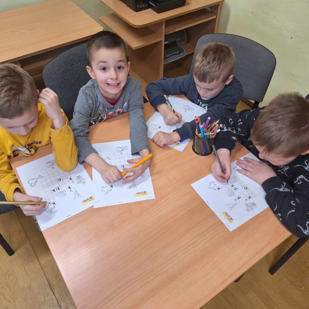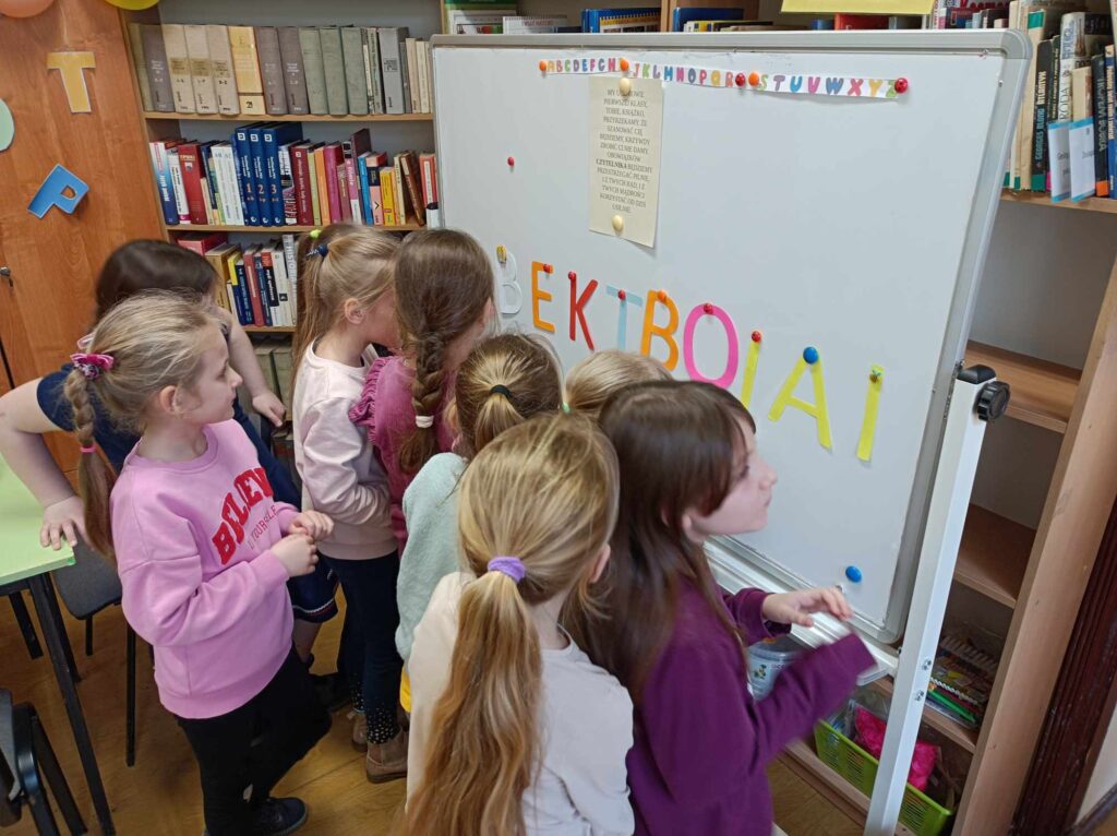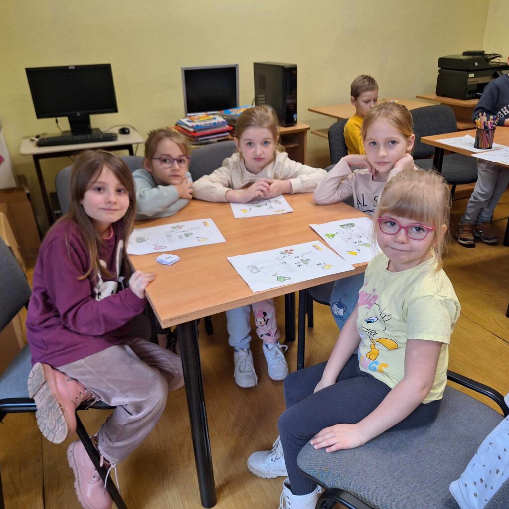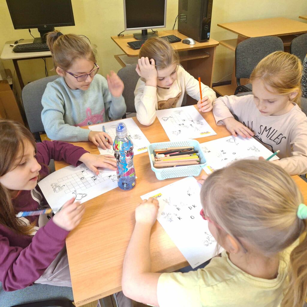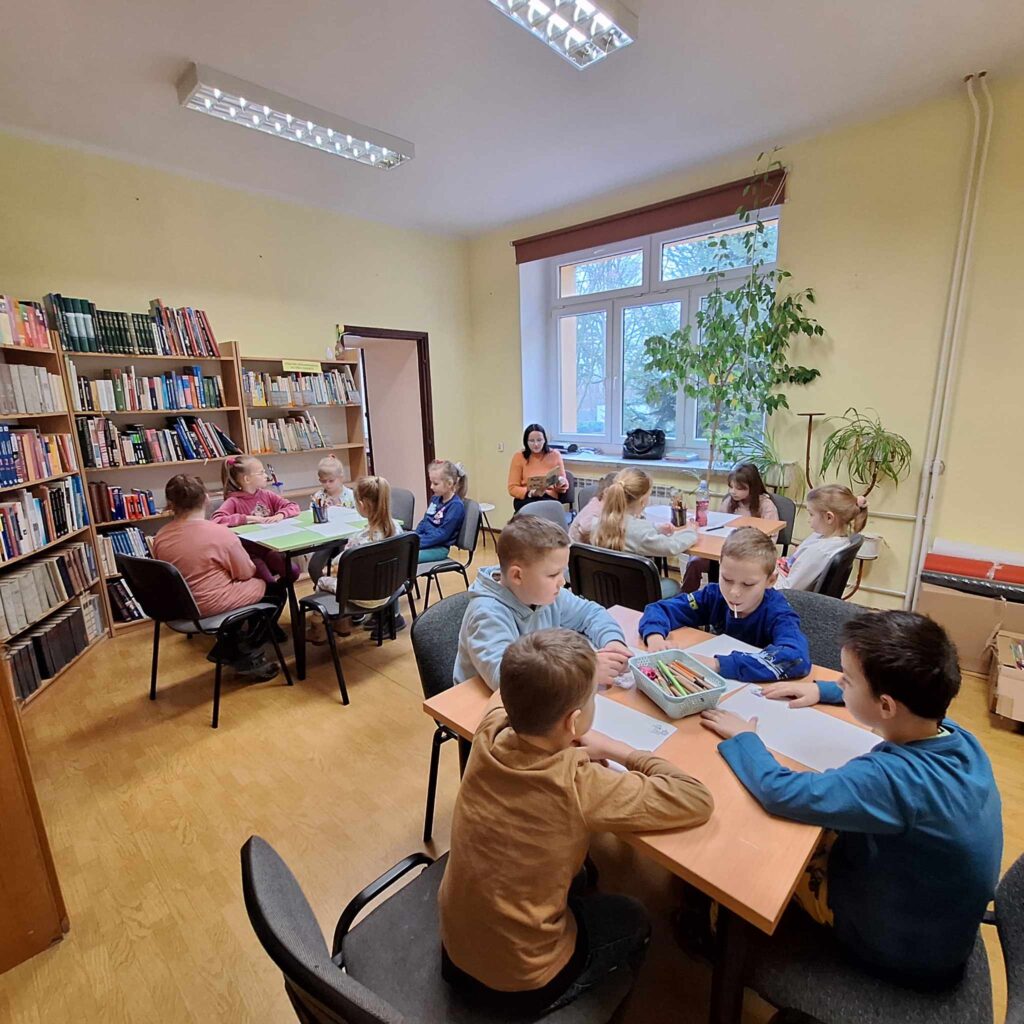 Uczniowie klasy pierwszej wzięli udział w lekcji bibliotecznej w bibliotece gminnej w Dębowej Łące. Uczniowie wysłuchali przygód żółwia Franklina, które przeczytała pani Justyna. Po wysłuchaniu opowieści oraz omówieniu przygód Franklina dzieci wykonały ilustrację na temat ” Przygody Dangura”. Ilustracje zostały zebrane i spięte w naszą pierwszą wspólną książkę. Dzieci wypożyczyły sobie książki na czas odpoczynku w czasie ferii. Dziękujemy pani Justynie za miłe spędzony czas.