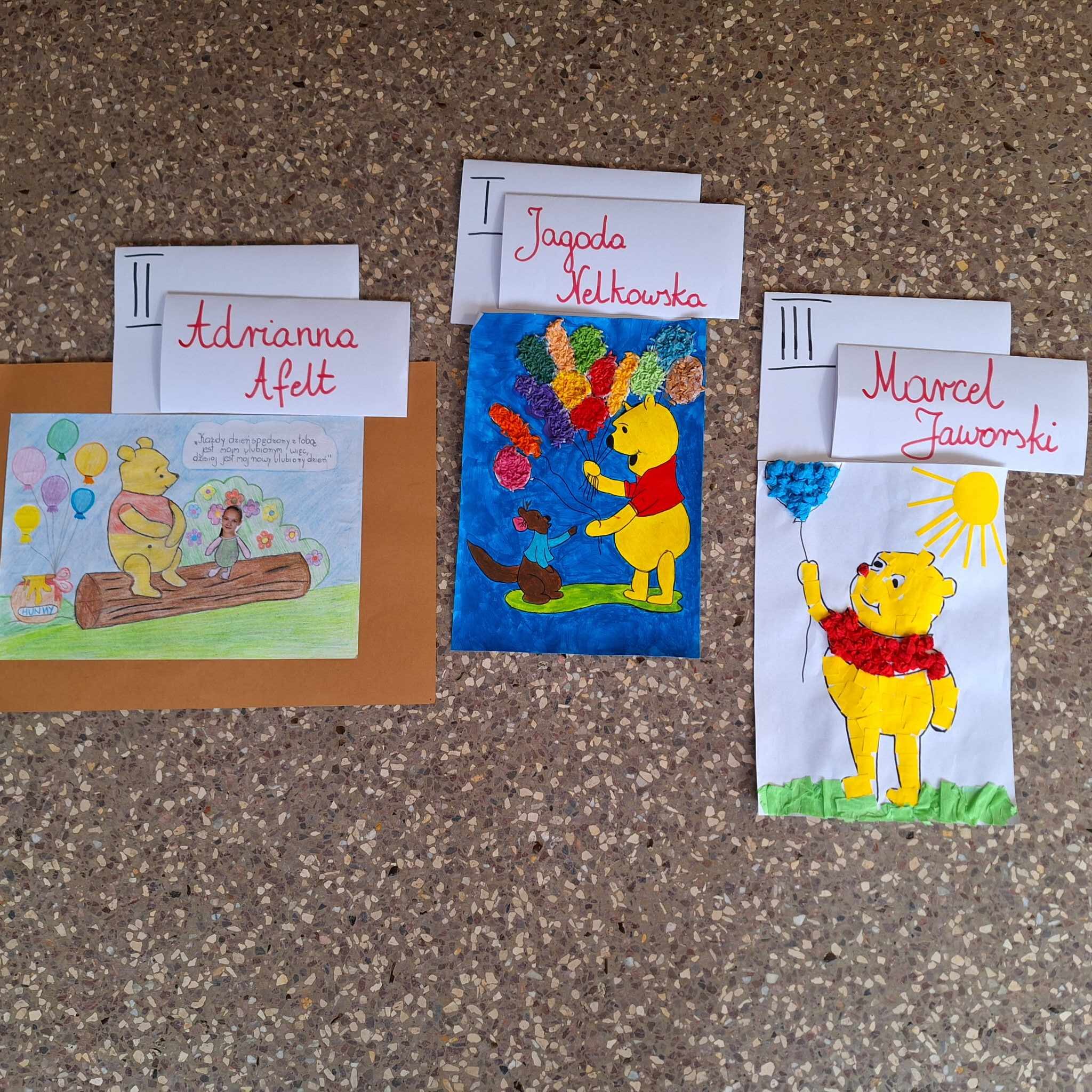Uczniowie naszej szkoły przystąpili do konkursu ” Kubuś Puchatek- przyjaciel na zawsze” organizowanego przez wąbrzeski Dom Kultury. Dodatkowo prace zostały nagrodzone na etapie szkolnym. Wszyscy artyści otrzymali drobne upominki oraz dyplomy. Dziękujemy firmie Agro- Tucz za współfinansowanie nagród. Dzieciom życzymy powodzenia na etapie wojewódzkim.