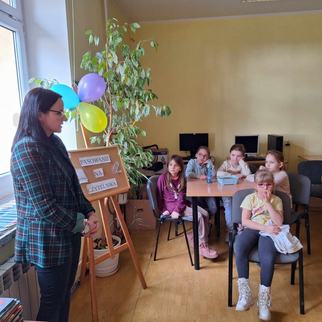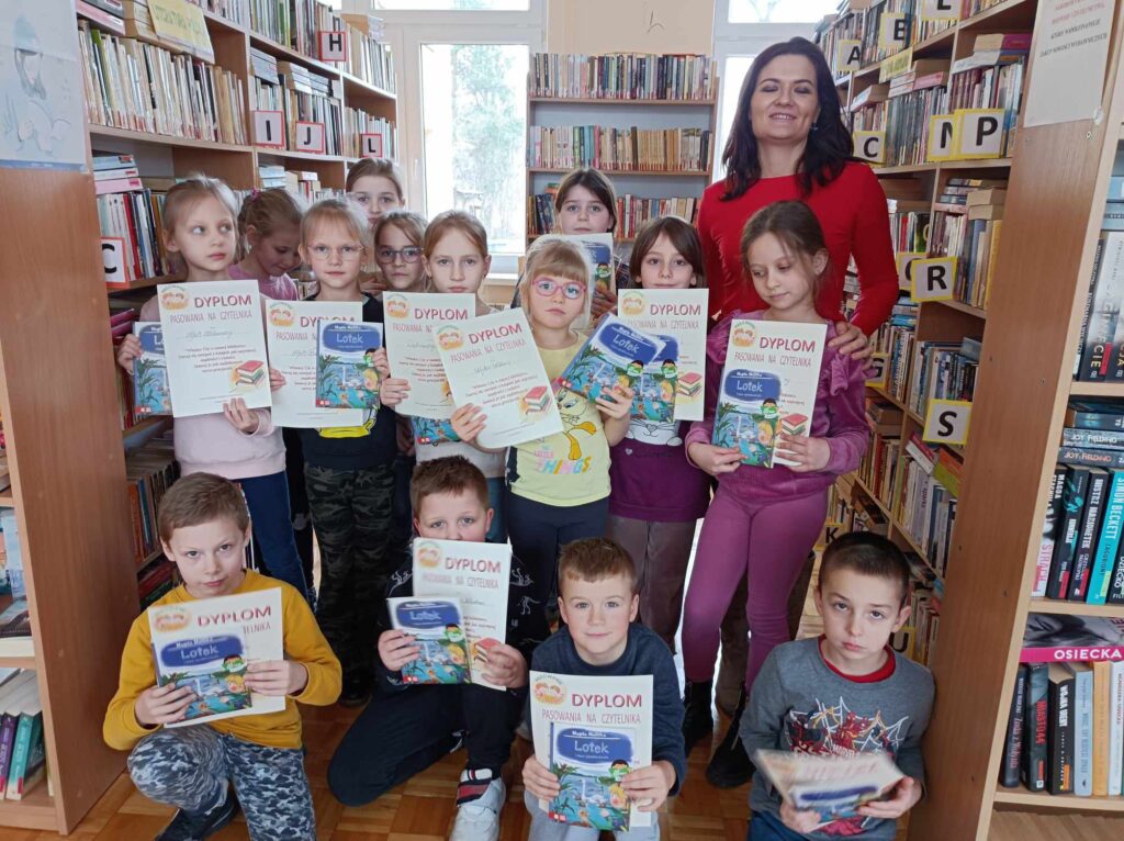 Pasowanie na czytelnika Gminnej Biblioteki w Dębowej Łące. W poniedziałek 4 marca uczniowie klasy pierwszej zostali pełnoprawnymi czytelnikami Gminnej Publicznej Biblioteki w Dębowej Łące. Dzieci uczestniczyły w zajęciach przygotowanych przez panią Justynę Kułakowską. Wierzymy, że dzieci już na dobre pokochają progi biblioteki i będą częstymi bywalcami skarbnicy książkowej wiedzy.