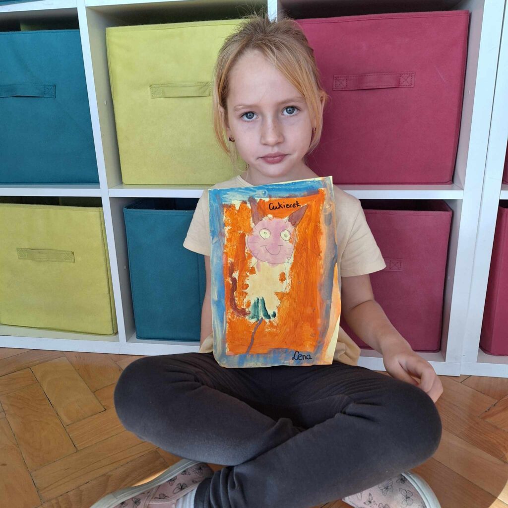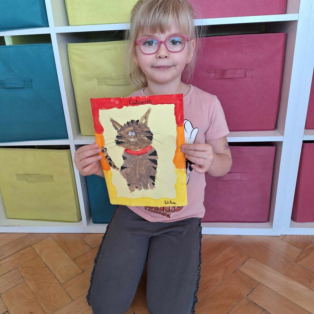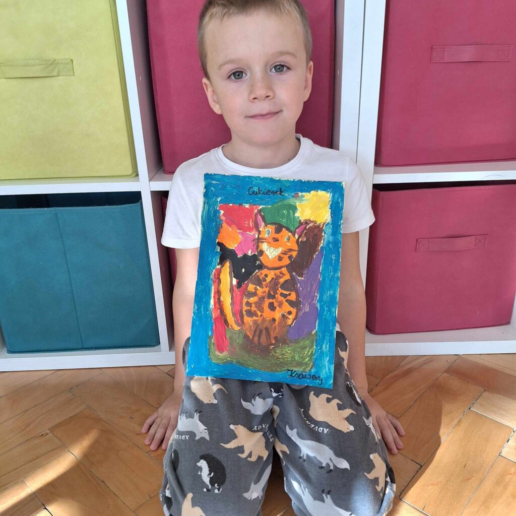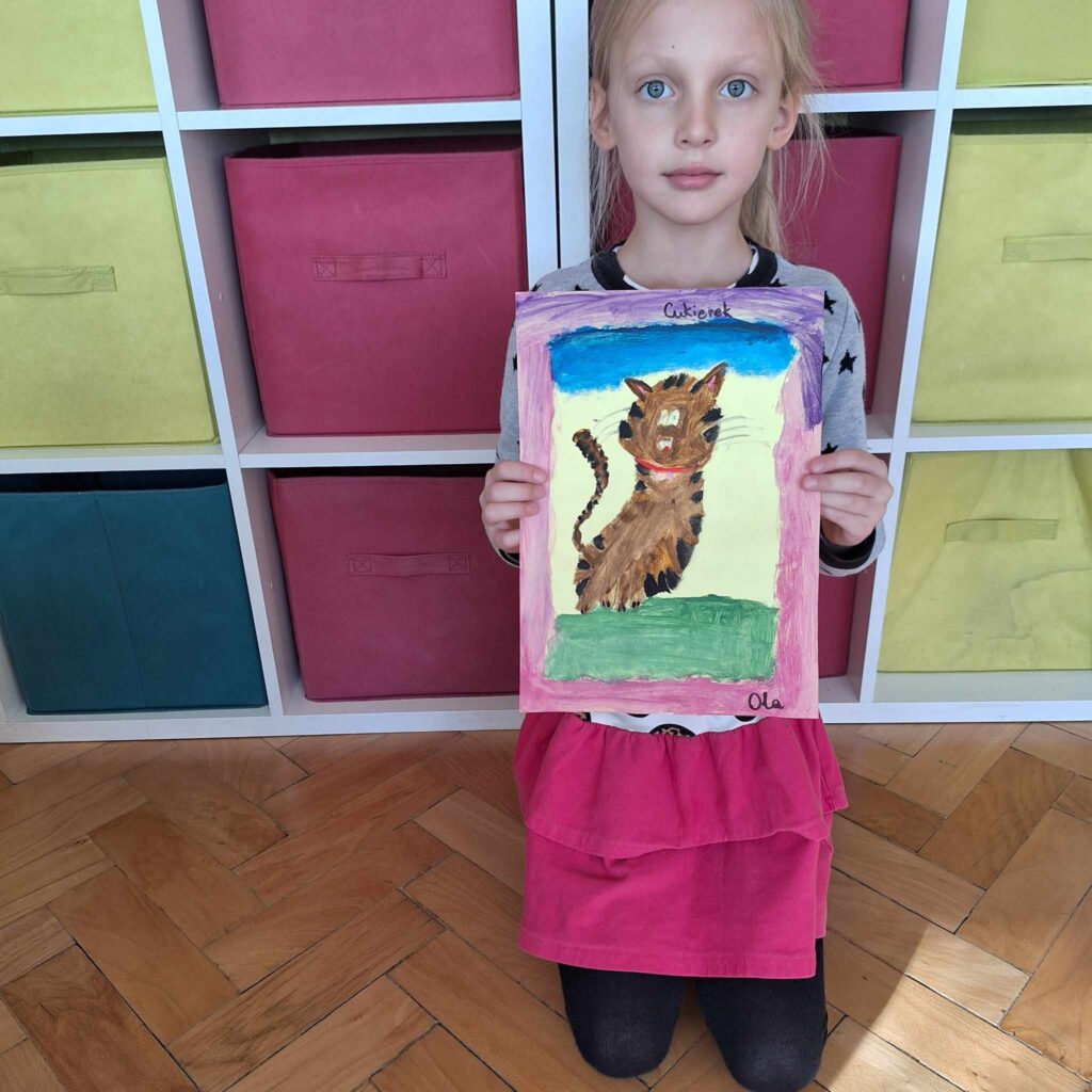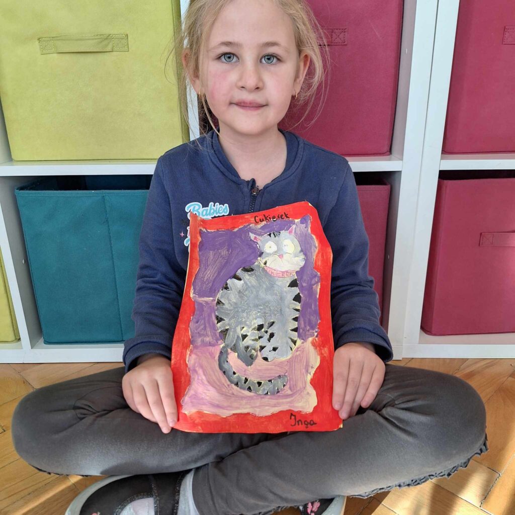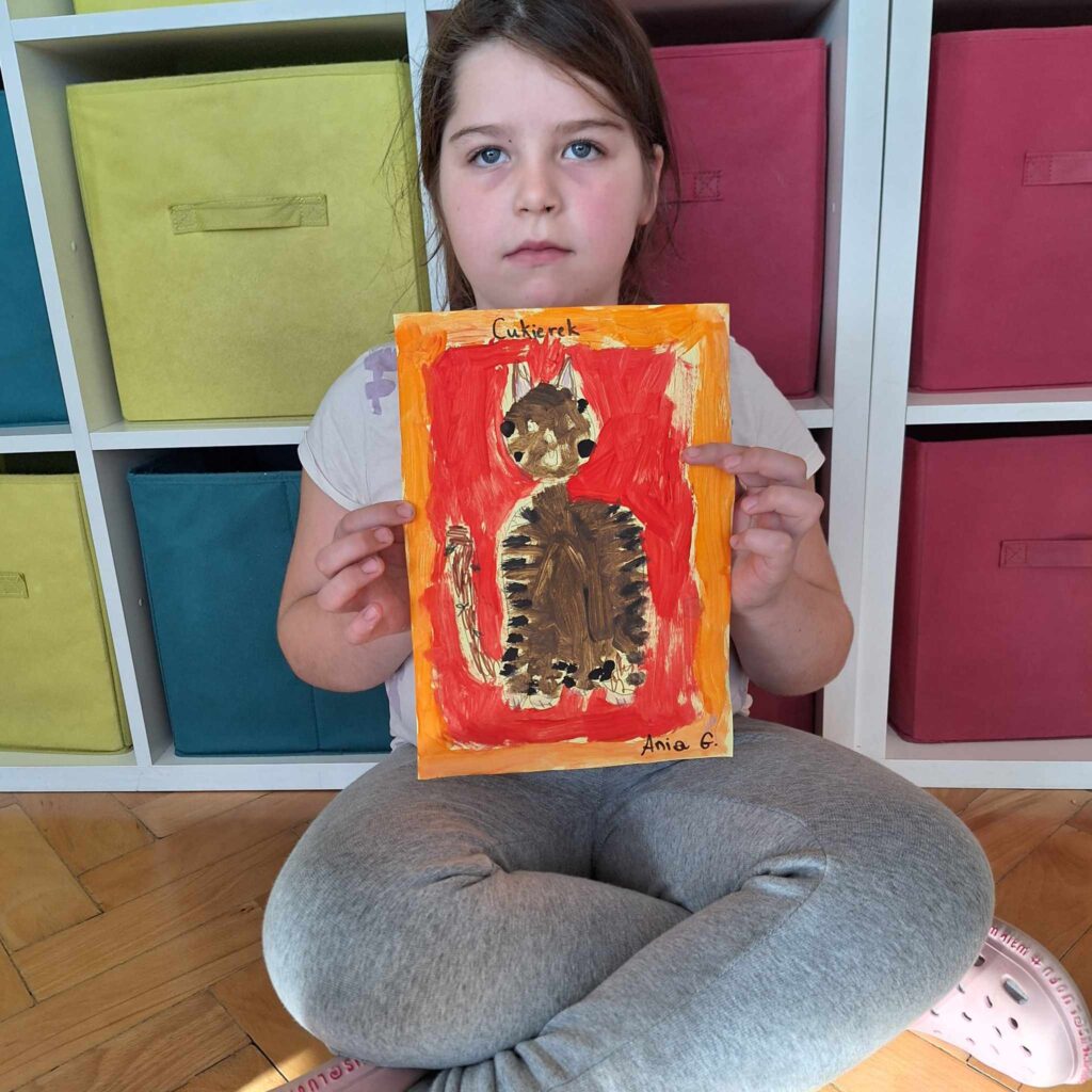 Uczniowie klasy pierwszej wykonali piękne prace plastyczne przedstawiające głównego bohatera lektury „Cukierku, ty łobuzie”.