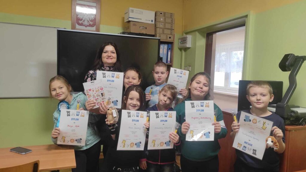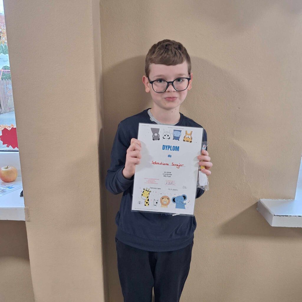 Samorząd Uczniowski ogłosił konkurs plastyczny Mój Pupil na początku października. Wpłynęło ponad 30 prac plastycznych przedstawiających zwierzątka domowe. Dzieci zostały nagrodzone dyplomami i długopisami, a miejsca I, II i III małymi gadżetami. Dziękujemy firmie Agro – Tucz oraz Rox – Mart za ufundowanie upominków.