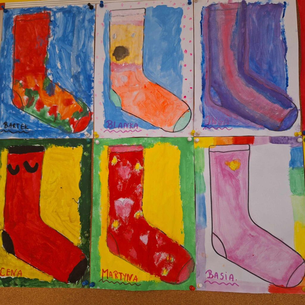 Uczniowie klasy pierwszej po zapoznaniu i omówieniu lektury ” Niesamowite przygody dziesięciu skarpetek ” zaprojektowali swoje własne skarpetki, które tak jak bohaterki książki pani Justyny Bednarek, są bardzo wyjątkowe i jedyne w swoim rodzaju.
