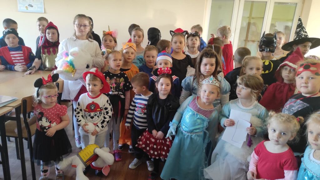 8 listopada w naszej szkole upłynął pod hasłem Dnia Postaci z Bajek. Uczniowie przebrali się za swoich ulubionych bohaterów z bajek, baśni i filmów animowanych. Było nas prawie 100 osób, które przyłączyły się do wspólnej zabawy. Wszystkie postaci z bajek otrzymały dyplom oraz słodki upominek. Tego dnia dyplomy i nagrody otrzymało 29 uczniów, którzy wzięli udział w konkursie Mój Pupil. Bardzo dziękujemy za piękne rysunki i zdjęcia Waszych zwierzątek domowych. Prace konkursowe są wywieszone na tablicy Samorządu Uczniowskiego. Gratulujemy wszystkim artystom.