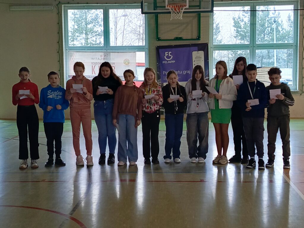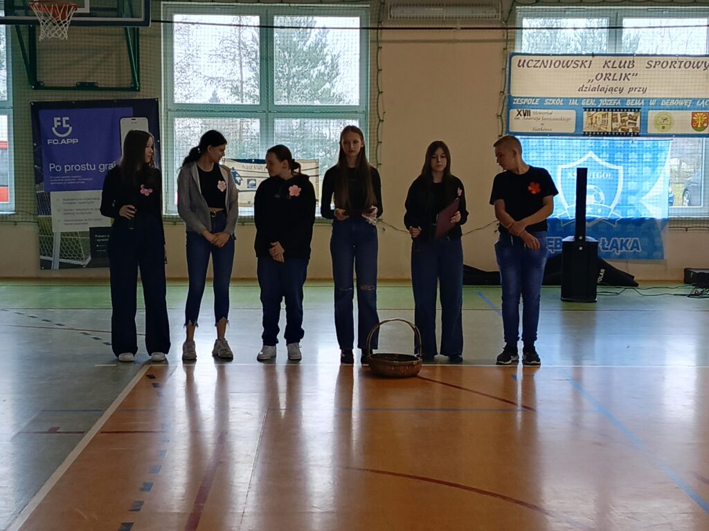 Ostatniego dnia przed wielkanocną przerwą świąteczną tj. 27 marca, w naszej szkole ukryło się 18 zajęcy. Każdy zając miał swoje imię i zapisane działanie do wykonania. W tym dniu przerwy międzylekcyjne mijały naszym uczniom na intensywnych poszukiwaniach i obliczeniach. Wszyscy uczniowie, którzy włączyli się do wspólnej zabawy otrzymali słodki upominek oraz dodatnie punkty. Osoby, które znalazły wszystkie ukryte zające i poprawnie rozwiązały komplet zadań otrzymały dodatkowo stopnie z matematyki.